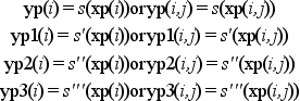 vectors (or matrices) of same size than xp, elementwise evaluation of the successive derivatives of s on xp