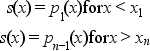 the extrapolation is defined as follows (p_i being the polynomial defining s on [x_i,x_{i+1}]) :